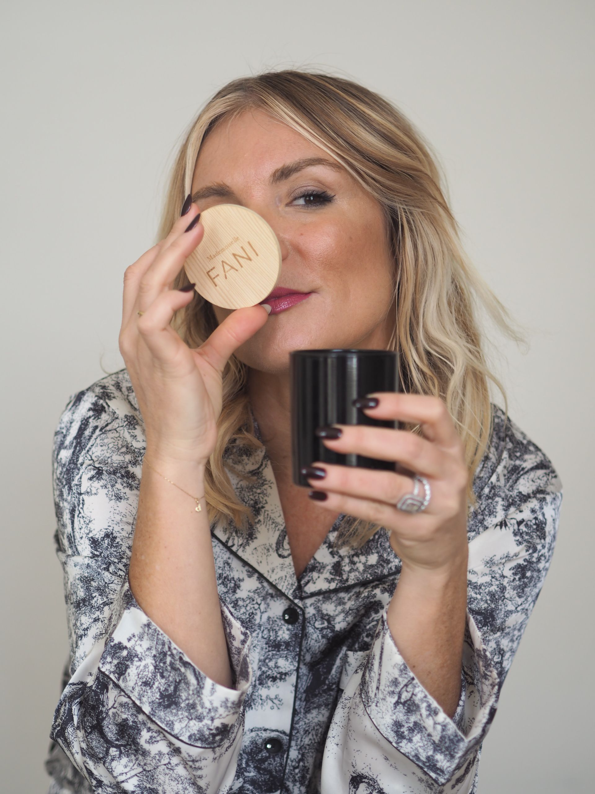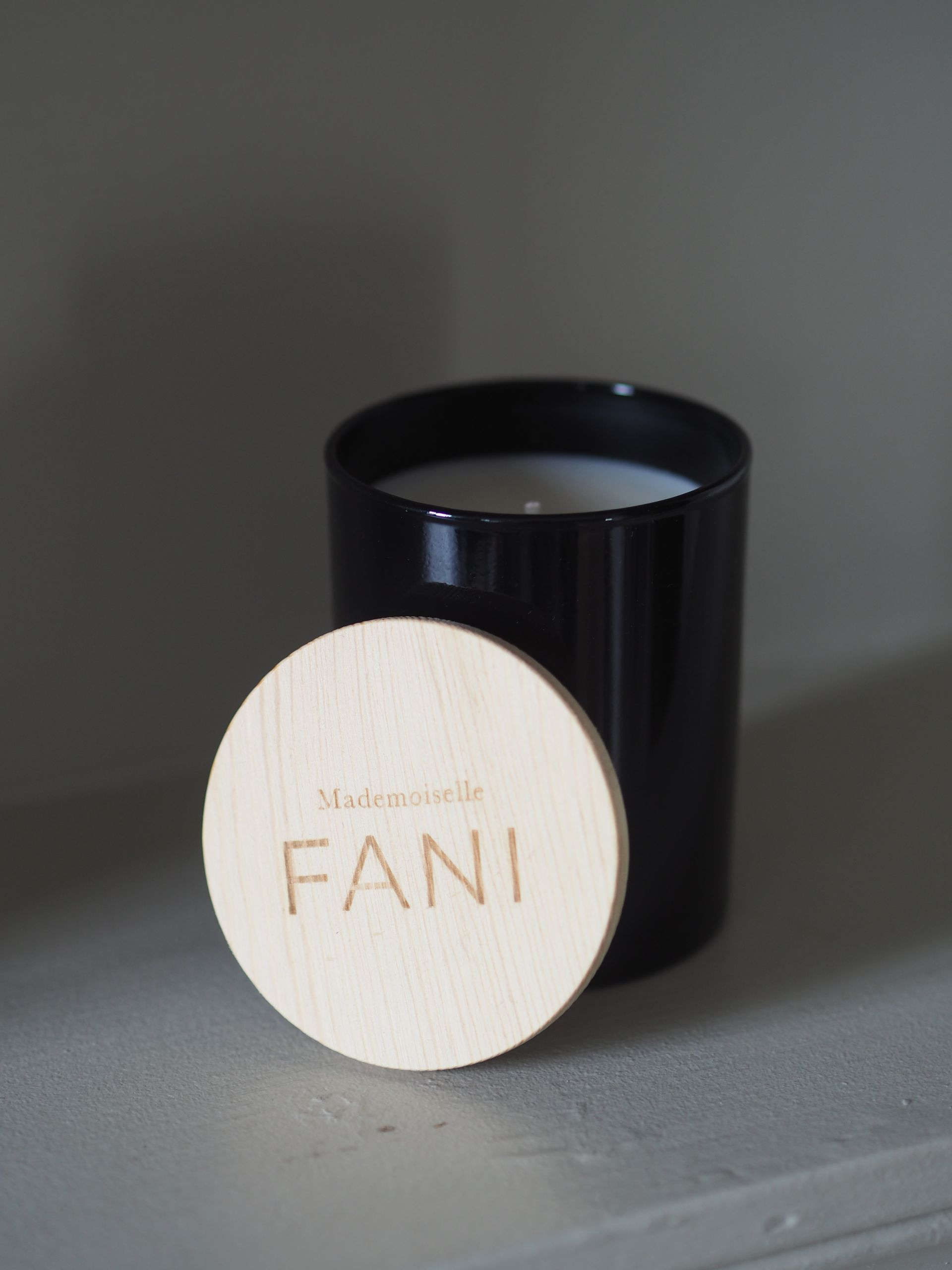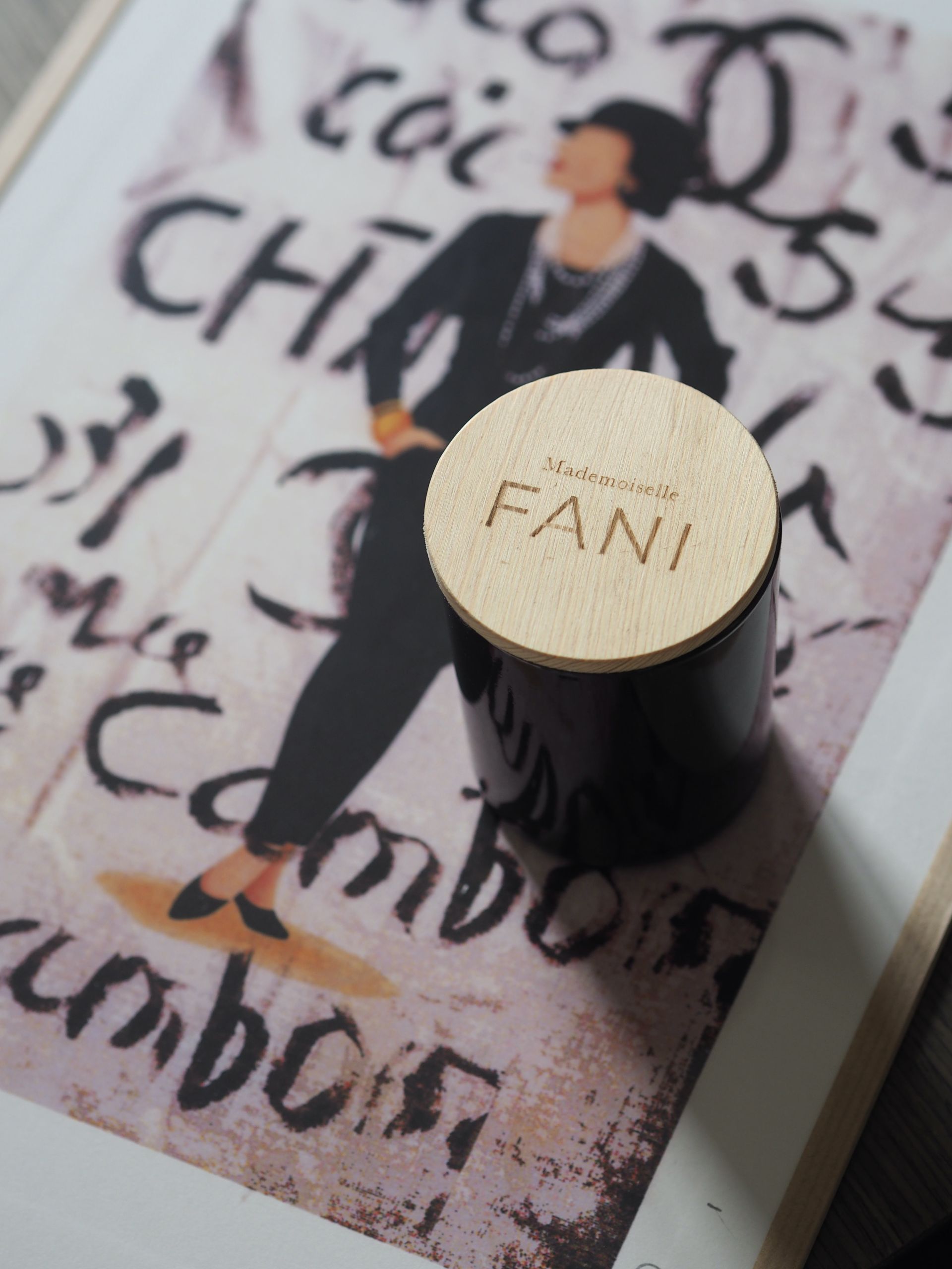 Verre ambré couvercle en bois gravé Mademoiselle FANI
