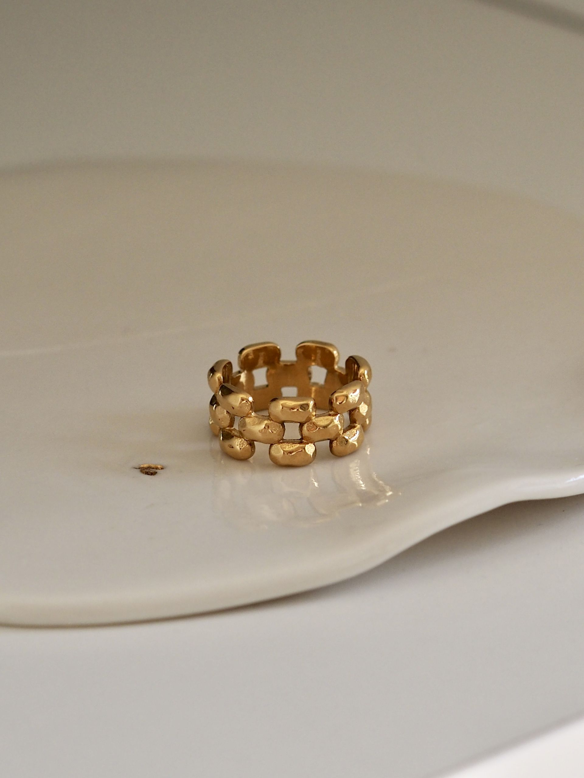 anneau acier inoxydable plaqué or 14k