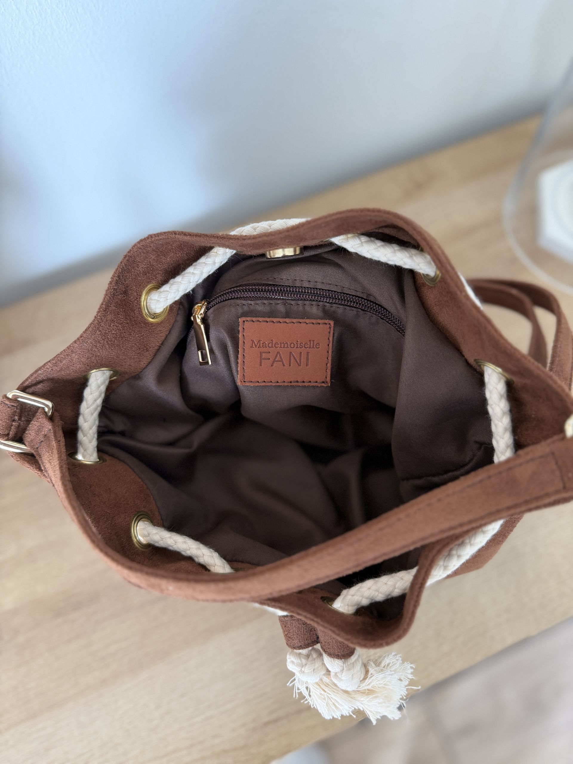 nubuck brown foncé pochette zippée