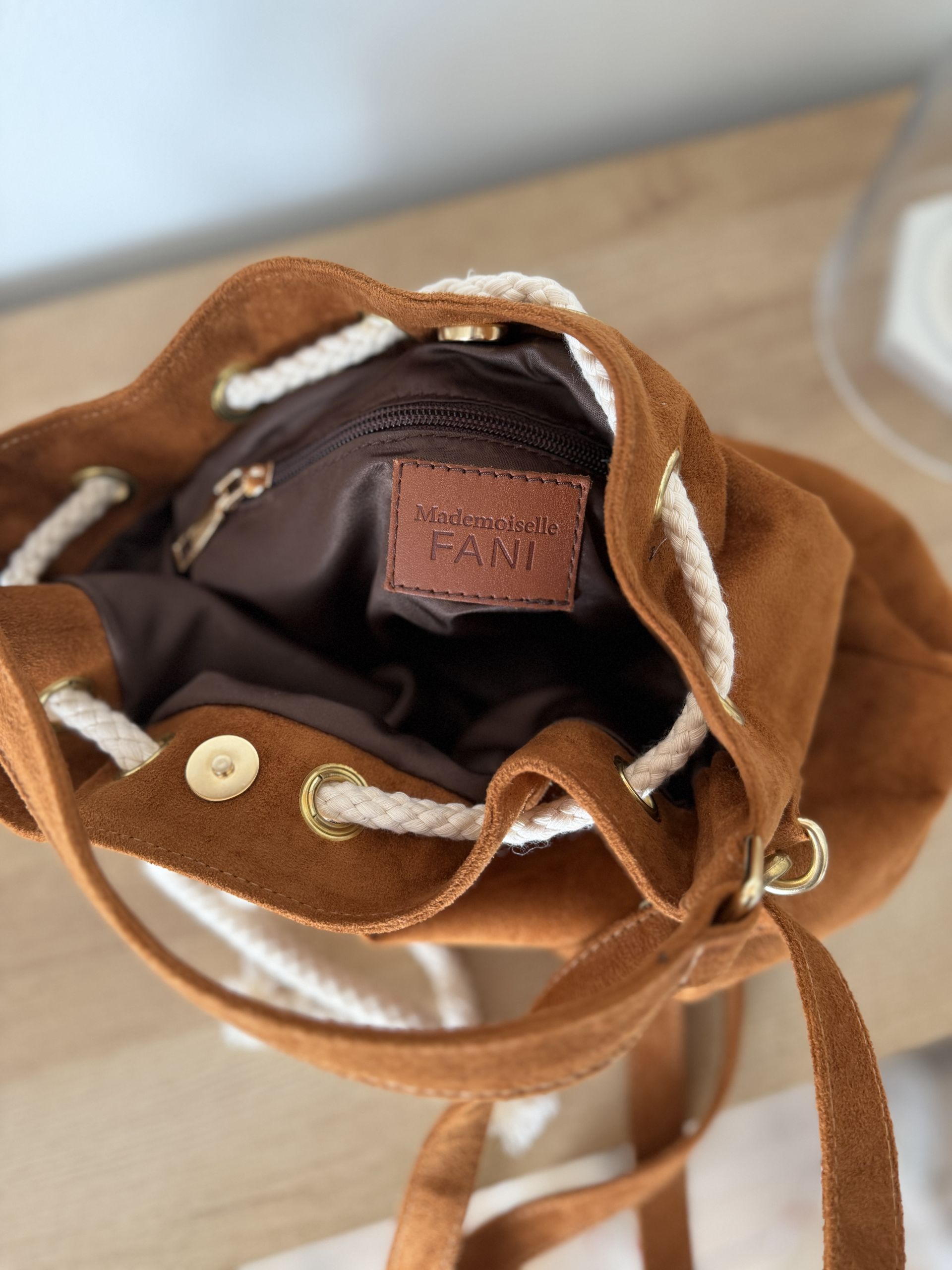 nubuck brown clair pochette zippée